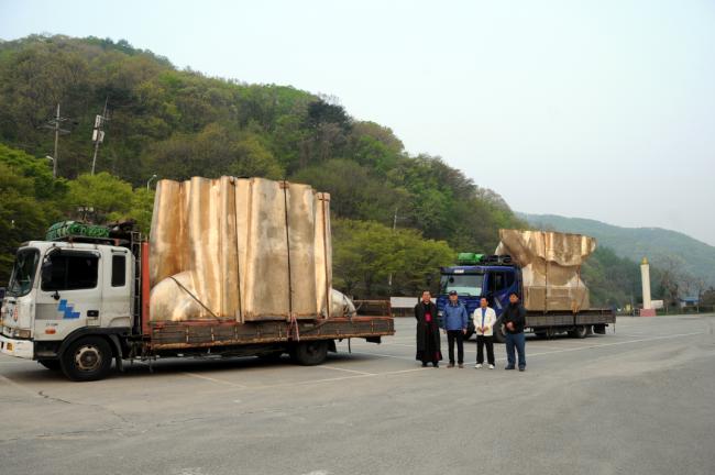 세계 평화의 청동 성모상, 천진암으로 이동 시작 !(2013.05.07. 새벽 6시 도착)