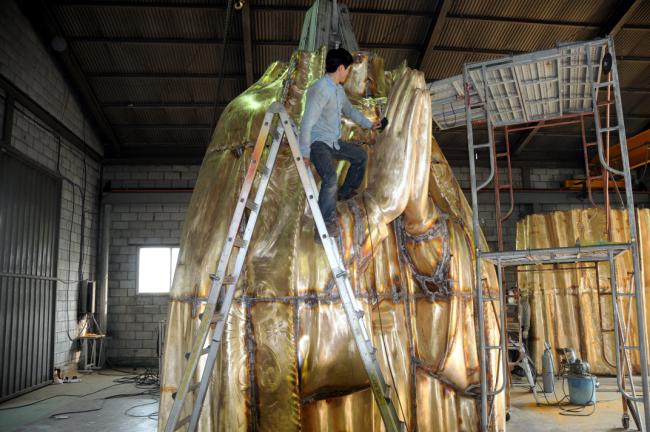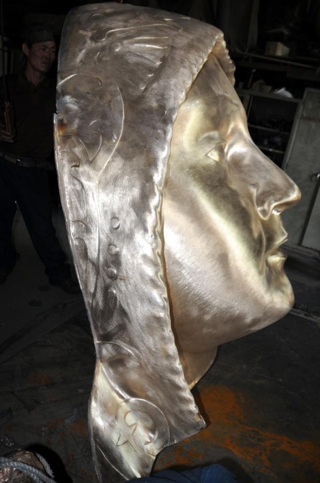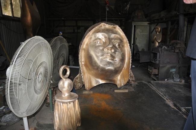 세계 평화의 성모상, 주물 두께 7mm(얼굴) 제작 현장(2013.05.23),