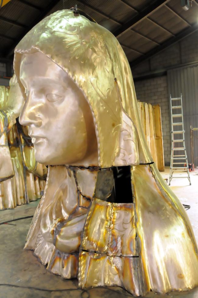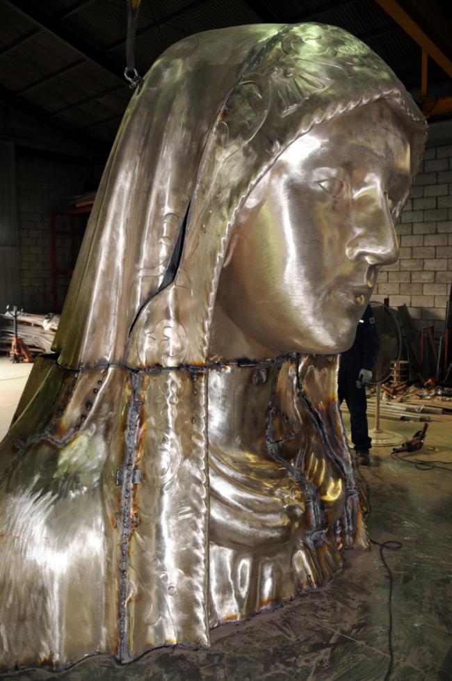 세계 평화의 성모상, 주물 두께 7mm(얼굴) 제작 현장(2013.05.23),