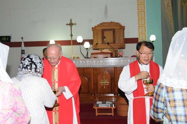 Holy See, Archibishop, Giuseppe de Andrea Pillgrimage 변기영 몬시뇰, 역촌동 본당 주임 정병조 신부, 수원 매교동성당 주임 이그레고리오신부, 천진암 성지 12시 순례객 미사 (천진암 박물관, 2012.06.19)