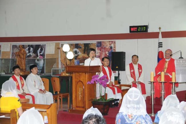 교황청 Giuseppe de Andrea 대주교님, 변기영 몬시뇰, 역촌동 본당 주임 정병조 신부, 수원 매교동성당 주임 이그레고리오신부, 천진암 성지 12시 순례객 미사(대주교님 강론 통역을 하는 최현순 박사 , 2012.06.19)