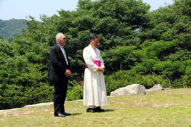 교황청 Giuseppe de Andrea 대주교님, 역촌동 본당 주임 정병조 신부님, 한국천주교회창립성현 묘 참배(2012.06.19)