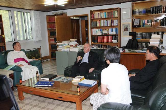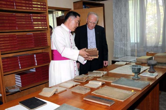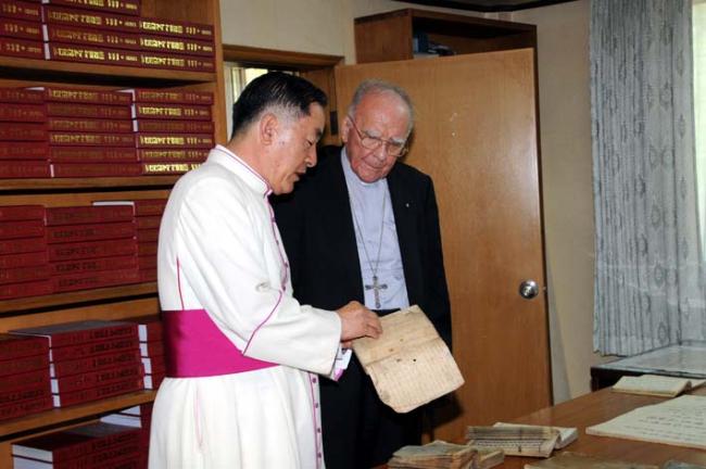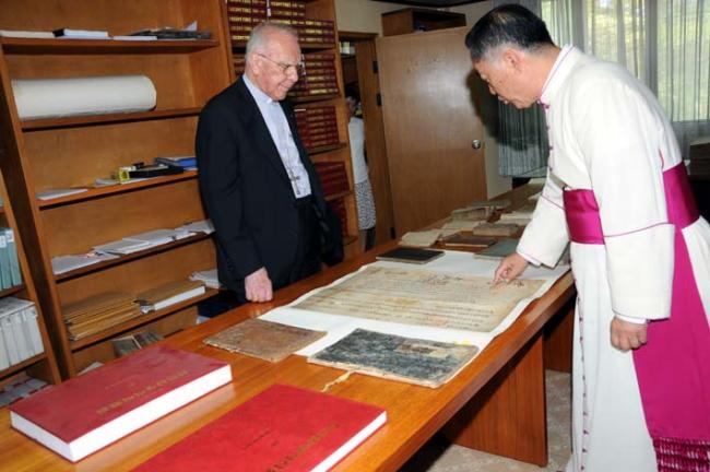 교황청 Giuseppe de Andrea 대주교님, 역촌동 본당 주임 정병조 신부님, 한국천주교회창립사연구원에서 고문서 열람(2012.06.19)
