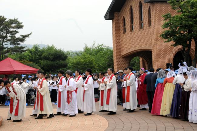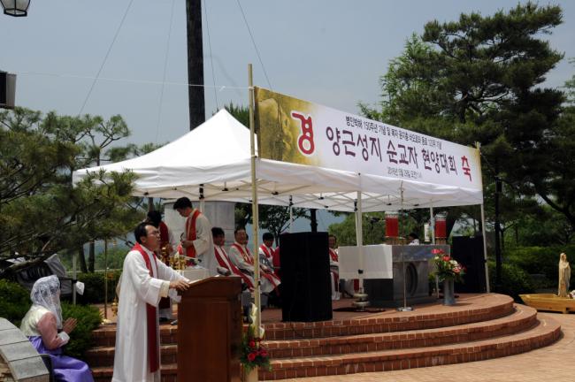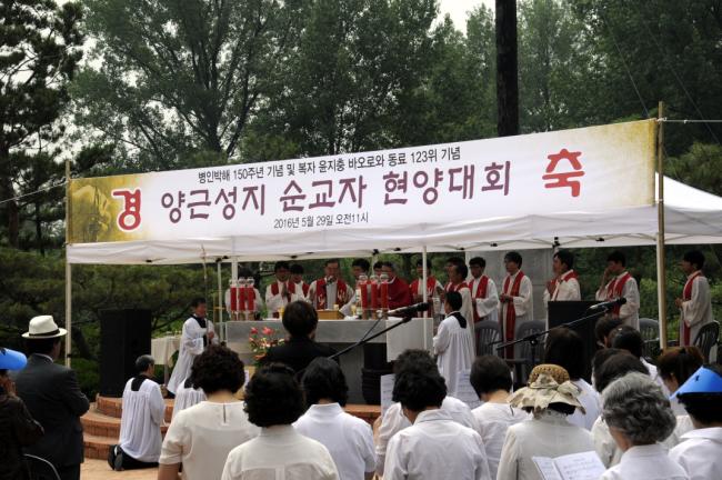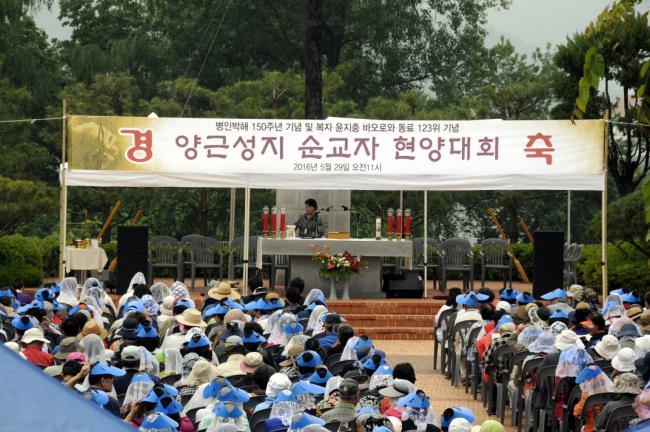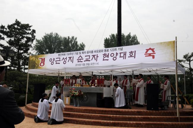수원교구 양근성지 순교자현양대회(2016.05.29.주일. 교구 총대리 이성효 주교 주례, 20여명의 양평 여주 사제들 공동미사, 3천여명의 신도들 참석)