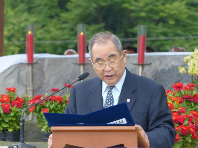 특히, 제1부 기념식에서는 모든이가 태극기에 대한 경례와 애국가 4절까지 제창, 6.25 전사자들 영혼을 위하여, 동시에 南北平和統一을 위한 기도를 바쳤다. 천진회 창립위원 이수성 고문(前 서울대학교 총장, 前 국무총리)의 紀念式辭와, 8년 임기를 마치는 김문수 경기도지사의 祝辭가 있었다. 이어서 교회 창립선조 후손들의 先唱으로, “대한민국 만세”, “한국천주교회 만세”, “한국천주교회 창립선조 만세”, “천진암 성지 만세”, 모두 12창을 우렁차게 목청껏 함께 불렀다.