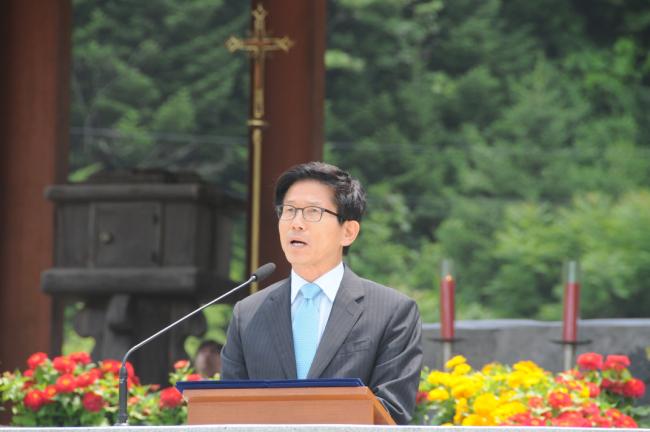 한국천주교회 창립 제235주년(1779~2014), (제36회)(1979~2014)기념행사 남경필 신임 경기도 지사 환영 인사와 박수