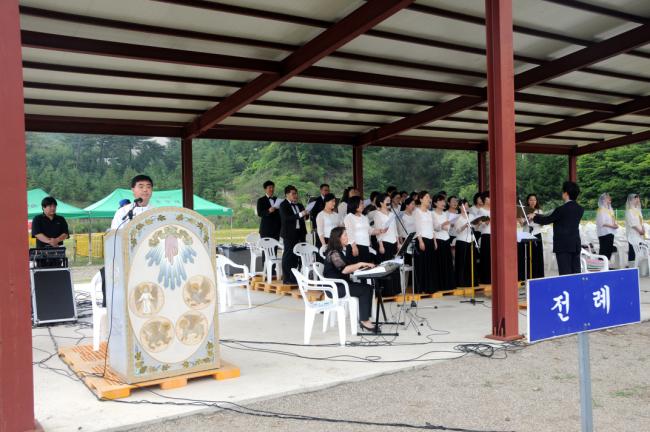 이날 기념식에 이어 기념 미사가 봉헌되고, 점심식사 직전, “天主恭敬歌” 기념비석이 제막되었다. 天主恭敬歌는 우리나라 천주교회 최초의 聖歌이며, 1770년부터 1784년까지 천진암 성지에 모이던 靑少年 선비들이 李檗 聖祖를 웃어른으로 모시고(爲上), 新學問 연구와 함께 자발적인 진리탐구의 講學이 절정에 오르던 1779년 겨울을 전후하여, 바로, 한국교회 창립초기에 이벽 성조께서 지어서, 제자들이 부르게 하던 노래로서, 천진암의 天學道場에서 賢友賢士 道友들의 天學叢林歌(其門下如叢林)였으며, 같은 시기에 지으신(下筆), 天學 敎義 敎科書와도 같은 聖敎要旨와 더부러, 심산궁곡에서나마 우리나라 천주교회의 탄생(natalis)을 알리는, 한국천주교 신앙의 움이 트고, 교회 공동체의 싹이 돋는 呱呱之聲이었다.