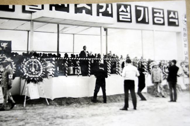 팔당댐 건설 기공식 중 박정희 대통령의 기공식 기념식사 (1966년 착공~1973년 완공)-金光彦 촬영